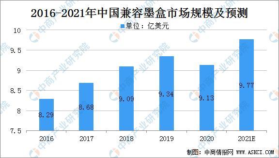 兼容墨盒市场在过去几年稳步增长。中国兼容墨盒市场从2016年的8.29亿美元增长到2020年的9.13亿美元。随着兼容墨盒市场渗透率的不断提高,预计市场规模将继续增长,在2021年达到9.77亿美元。