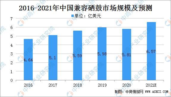 中国兼容硒鼓市场规模在过去几年逐渐增加,从2016年的4.64亿美元增长到2019年的5.98亿美元,2020年由于新冠疫情的影响下降至5.81亿美元。由于2021新冠疫情的消退,加上兼容打印机耗材在经济环境衰退的环境下有较高需求,预期市场将自2021年恢复增长,达6.57亿美元。