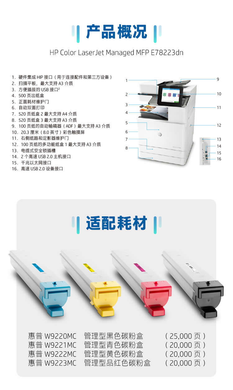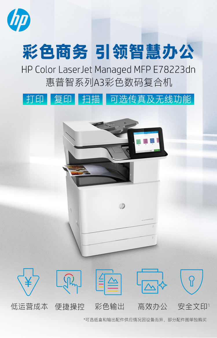 惠普(HP)A3A4彩色激光打印机大型办公打印复印扫描多功能一体机 78223dn