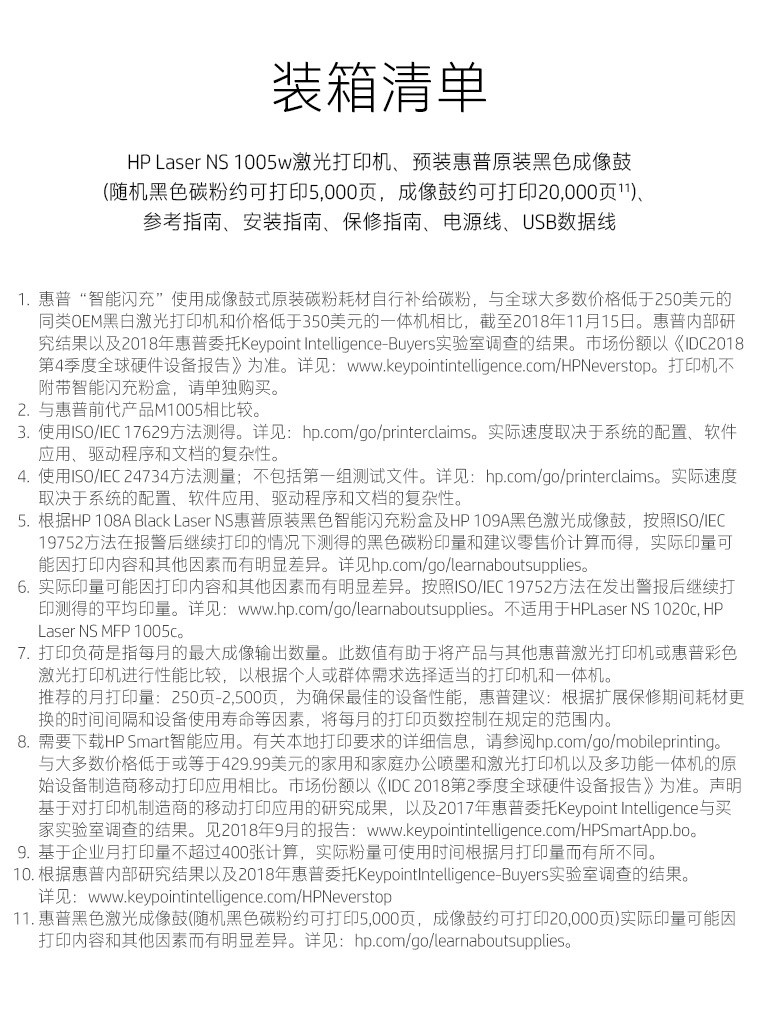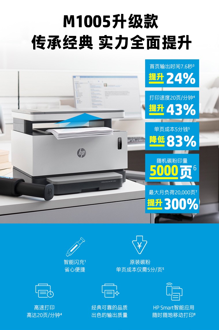 惠普(HP)Laser NS MFP 1005 智能闪充激光多功能一体机 打印复印扫描 NS1005W(无线网络+随机耗材打5000页)