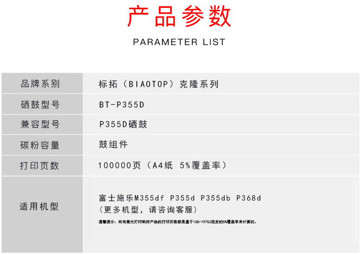 标拓 Biaotop P355D 鼓架适用富士施乐M355df/P355d/P355db/P368d复印机 克隆系列